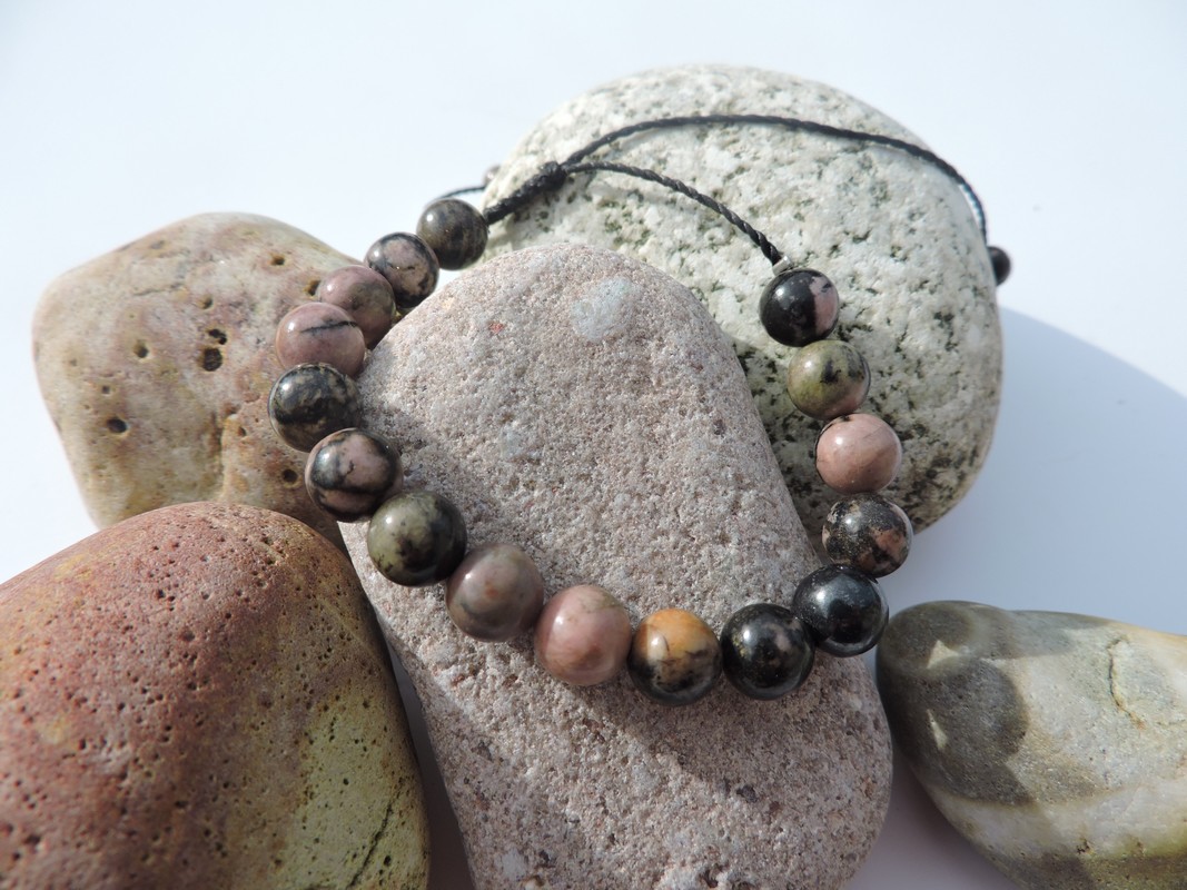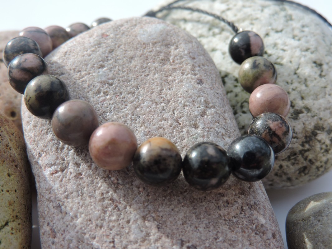 La Rhodonite est une pierre naturelle de couleur rose plus ou moins veinée de noir. Les perles fines peuvent être aussi bien d’un rose très clair que d’un rose très foncé , veinées de noir, de gris ou non.